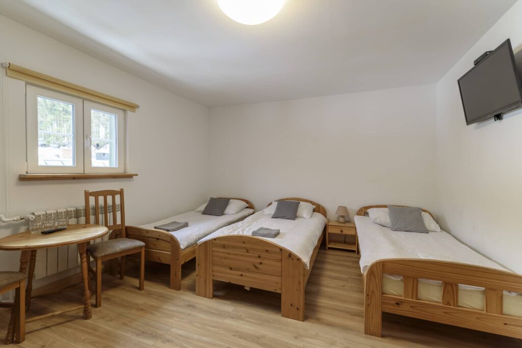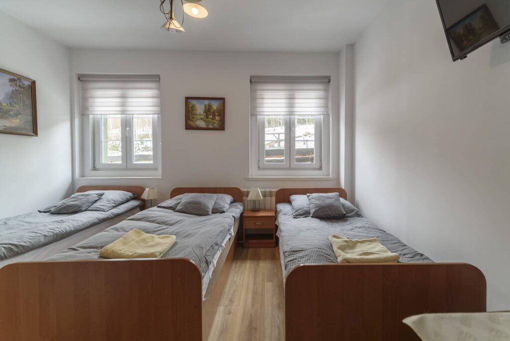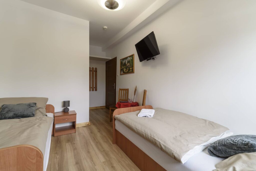 Każdy pokój posiada własną łazienkę oraz telewizor. Jak to w trudnym terenie w górach, zdarza się, że telewizja nie działa, ale… wiemy, że nie przyjeżdżacie Państwo do nas, by oglądać telewizję 😉